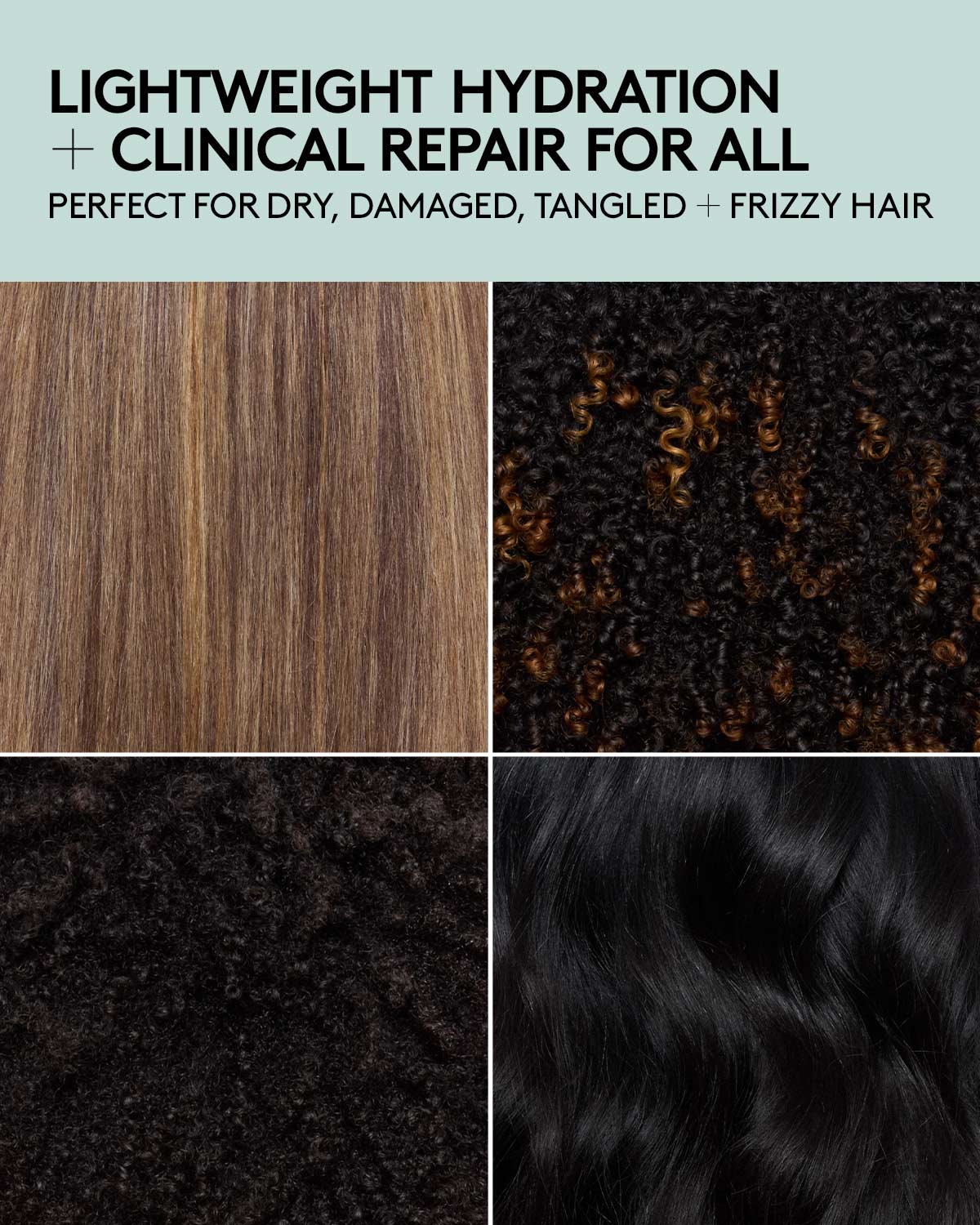 A lightweight, multitasking, reparative leave-in conditioner spray that provides all-day hydration, detangles, smooths frizz, softens + refreshes strands.